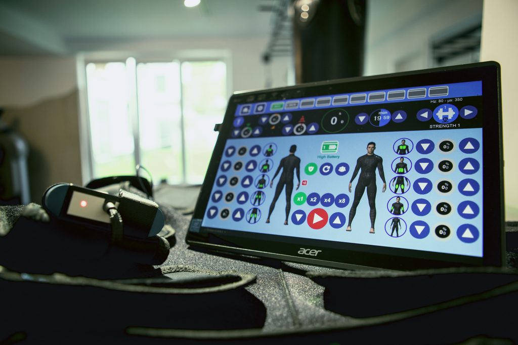 EMS ist seit Jahrzehnten in der Physiotherapie und REHA bekannt. Dort wird Reizstrom eingesetzt um – z.B. nach einer Verletzung oder einer OP bestimmte Muskeln wieder aufzubauen oder einem Muskelschwund vorzubeugen. Dafür werden kleine Elektroden an den entsprechenden Stellen der Muskeln aufgelegt.